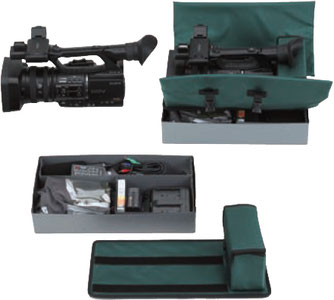 飛行機の機内持ち込み手荷物基準に対応した汎用カメラBAGです。レンズ(標準レンズ)、ビューファインダー、マイク、バッテリーを取り外して収納します。カムコーダー本体はクッションいりマットで固定でき、標準レンズ等アクセサリー類は空いたスペースに全て収納できます。底面に3mmP.P.ハニカムボード、低反発クッション10mmを使用し、その他の面はP.P.片面ハニカムボード、10mmクッションをいれ内容物を保護します。固定マットはマジックテープで取り外しができるので、現地では通常の汎用BAGとして使用できます。