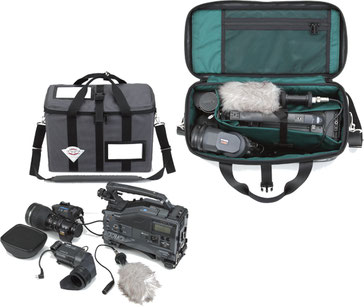 HD-TVカメラ(ハンディ)用BAG。後側に後付けのワイヤレス及びバッテリーを取り付けた状態で収納が可能です。
